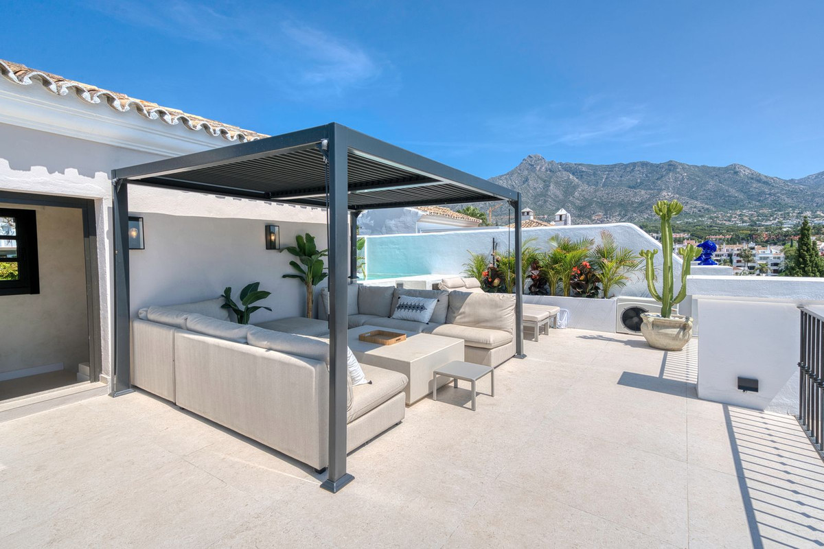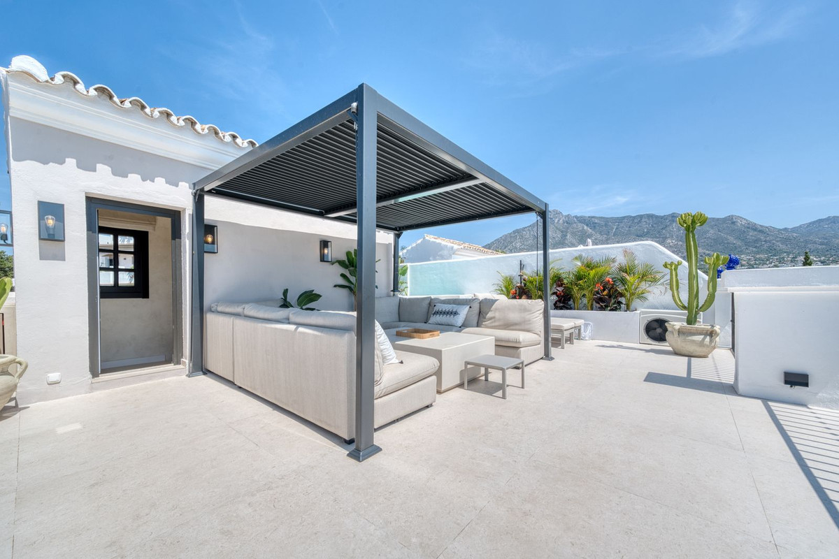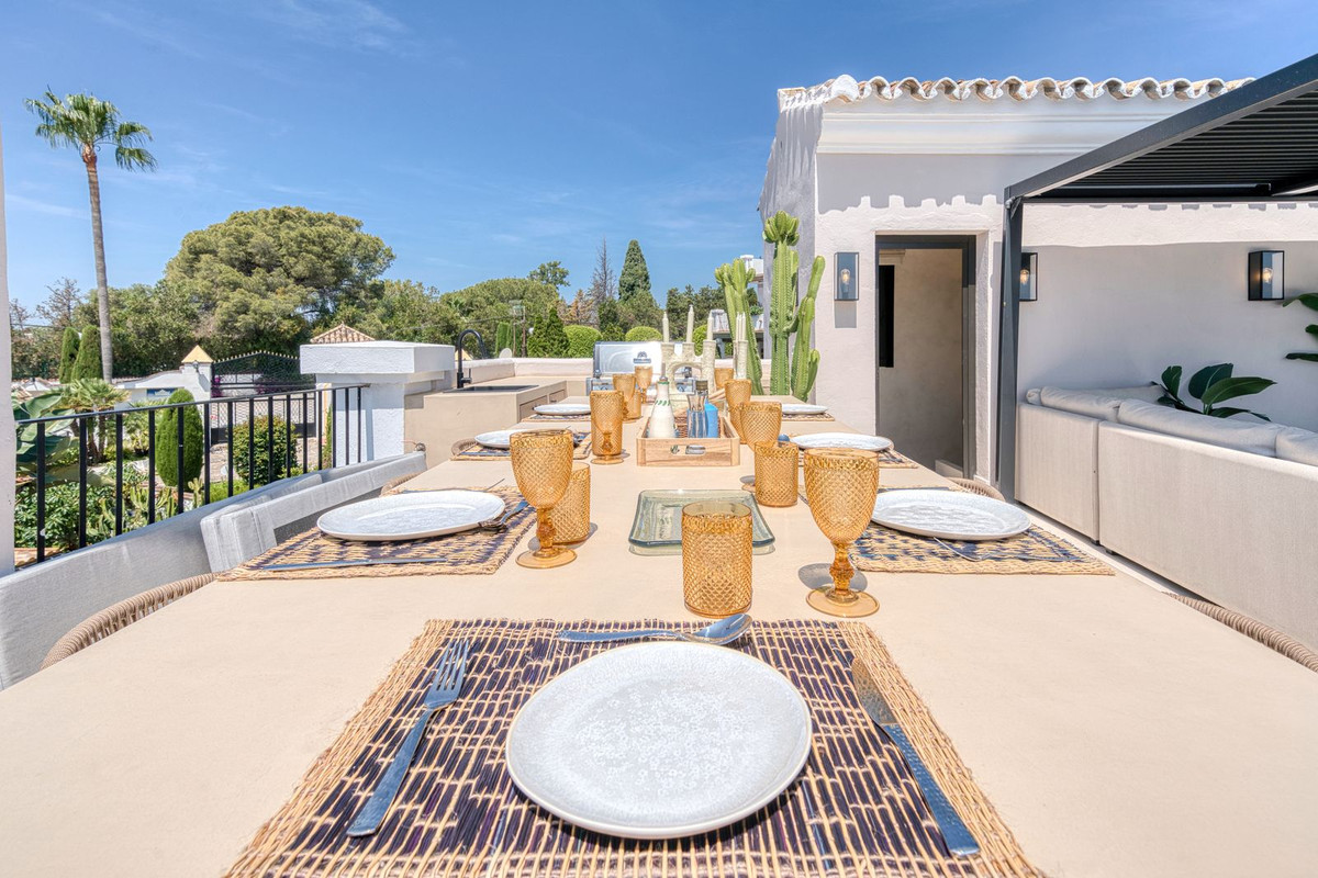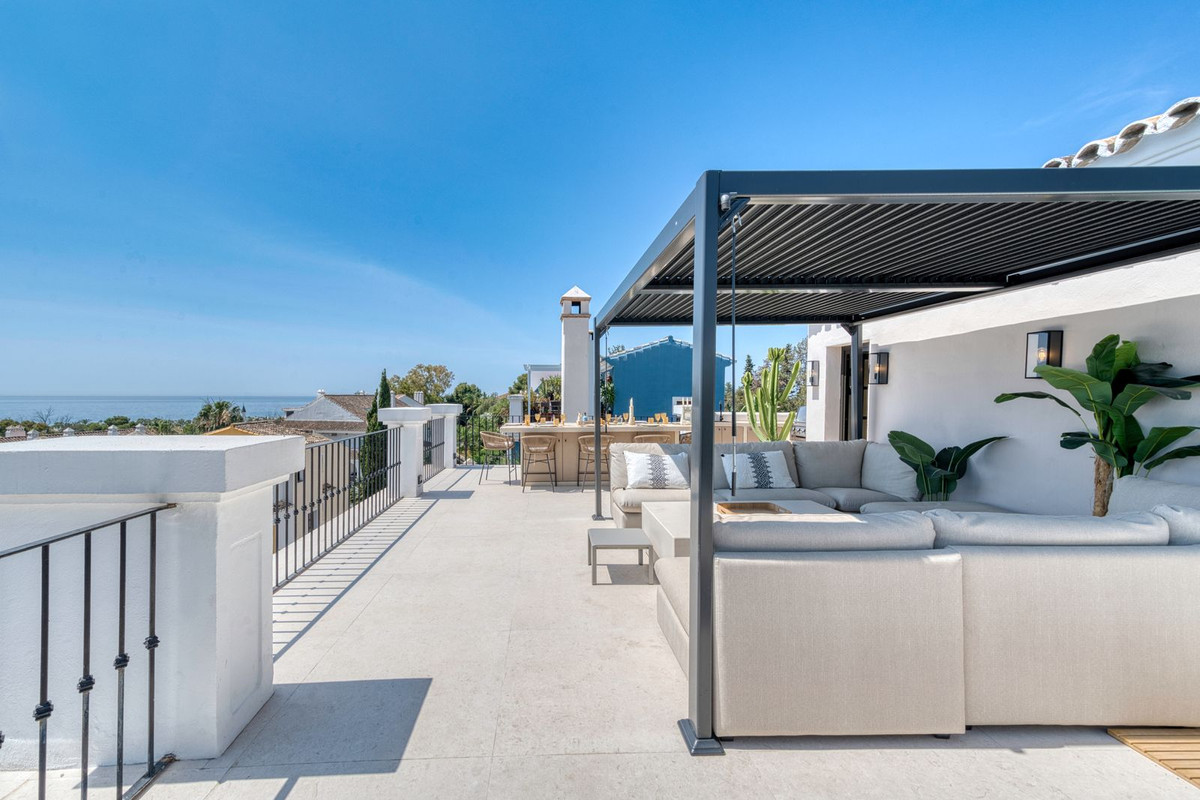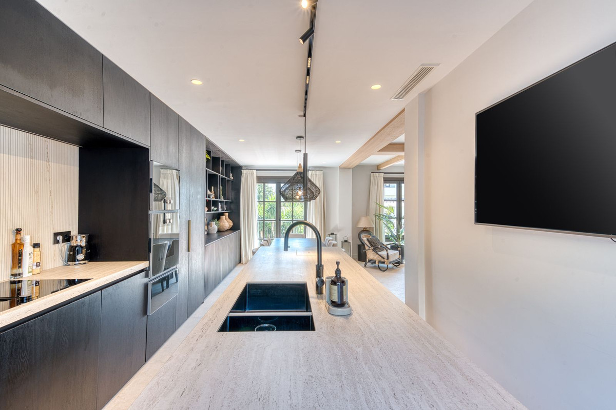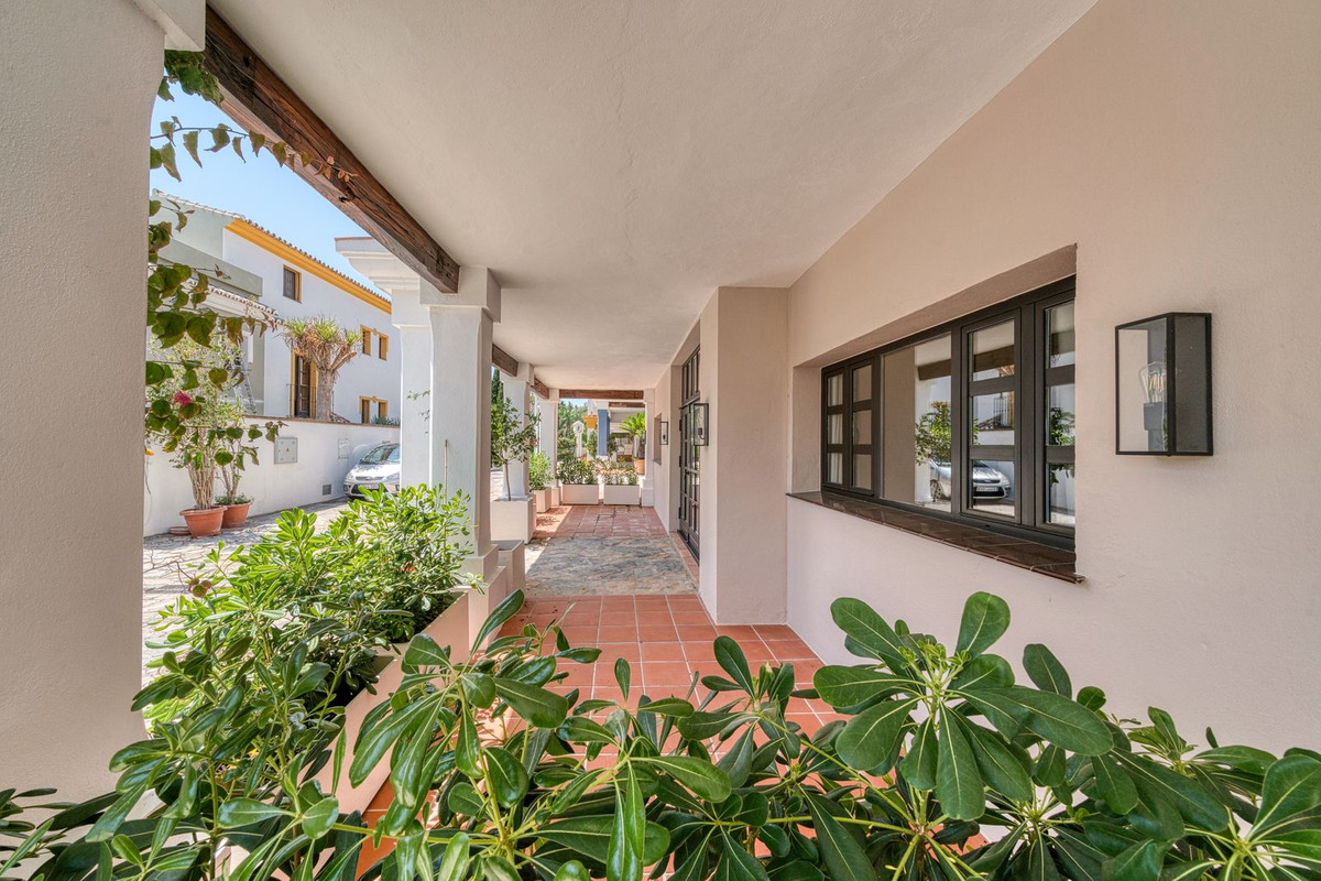 Set within an exclusive gated community on Marbella's Golden Mile, this exquisite end of terrace townhouse/villa captures the essence of classic Andalusian architecture with a luxurious contemporary edge. Located in the heart of Marbella’s prestigious Golden Mile, it offers total privacy, timeless design, and immediate access to the coast’s most iconic beach clubs and fine dining. The private community gated and secure, low-density community of just 24 homes, surrounded by Mediterranean gardens, cascading fountains, and a sculpted swimming pool. With 24-hour security and on-site maintenance, it offers the peace of a private retreat just moments from the beach and the Paseo Marítimo (1km, 16 minutes walk).