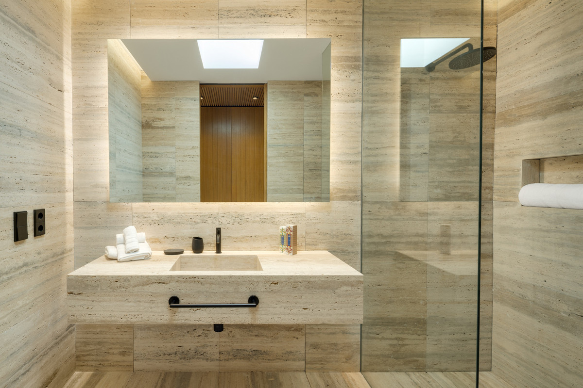 This residence comfortably spans three levels, providing an expansive living area that features seven bedrooms, each with its own en-suite bathroom, and an additional guest toilet. The villa’s design cleverly invites natural light to flood the interior spaces and offers fluid transitions between indoor and outdoor areas. Exhibiting an open-plan layout, it presents generous spaces for entertainment or relaxation, with expansive terraces poised as inviting spots for al fresco dining or quiet reflection under the Andalusian sun.