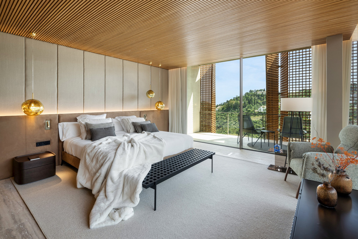 Known for its tranquility and lush environment, El Madroñal provides the perfect backdrop for this luxurious property. As a gated community, it ensures an exceptional level of privacy and security, appealing to those who value seclusion without sacrificing convenience. The neighborhood’s proximity to essential amenities is a mere 15-minute drive, including access to local shops, schools, and the enchanting beaches of the region. El Madroñal’s environment is celebrated for its flowing landscapes, extensive walking trails, and a close connection to the natural charm of Benahavís.