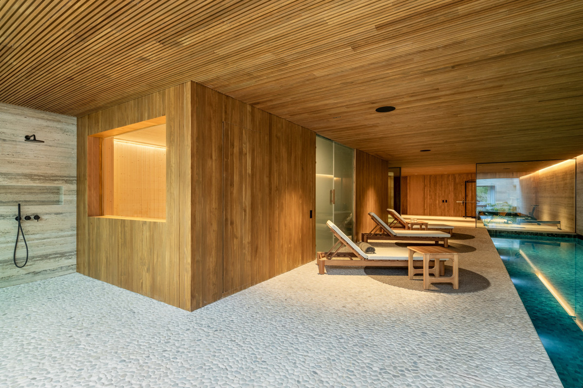 Inside, every detail articulates modern sophistication, with amenities that include a heated swimming pool and Turkish bath, as well as a private cinema room and wine cellar. These indulgent features create an environment where luxury meets comfort. Furnishings throughout the villa are selected to echo the modern architectural lines, ensuring an ambiance that is both elegant and welcoming.