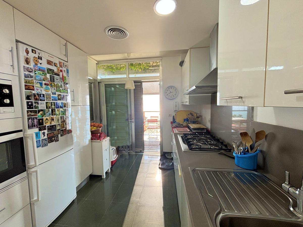 PENTHOUSE WITH SPECTACULAR PANORAMIC SEA VIEWS IN A PRIVATE GATED COMMUNITY BETWEEN SOTOGRANDE AND PUERTO DE LA DUQUESA.Privileged location in a beautiful private urbanization with 24-hour security, surrounded by peace, safety, and just 5 minutes from Puerto de la Duquesa and all essential services. Set within a meticulously maintained community offering extensive common areas, including an outdoor swimming pool, indoor heated pool, and a social area for events and gatherings. This sophisticated property, built with excellent quality finishes, features three spacious bedrooms and three bathrooms, one of them en suite, an independent kitchen with laundry area, and an elegant living room that opens onto a spectacular 32 m² terrace with breathtaking panoramic sea views — perfect for enjoying the Mediterranean climate year-round. With its excellent orientation, the apartment is bright and welcoming, making it ideal both as a permanent residence and as a high-yield investment. Double-glazed windows, shutters, a private parking space, and a storage room are all included in the price. An irresistible penthouse that perfectly combines comfort, style, and an unbeatable location.