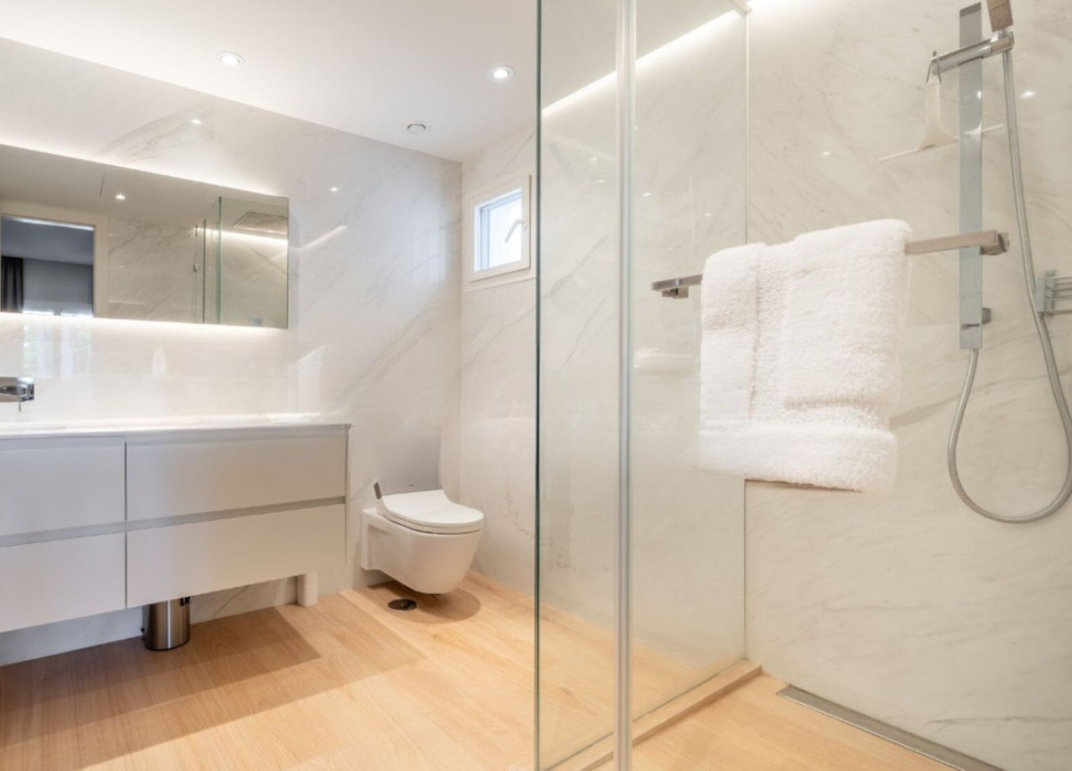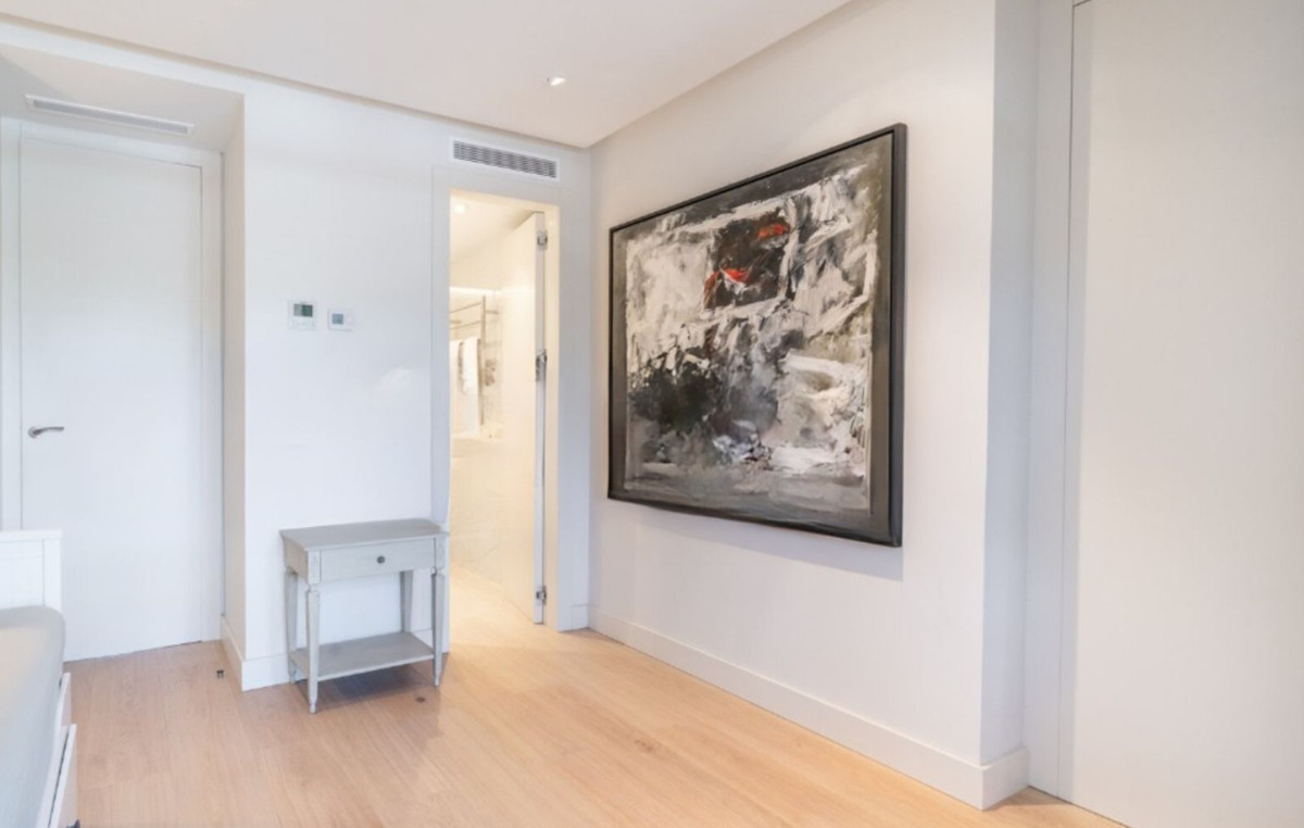 The home comprises three elegant en-suite bedrooms. The expansive master suite includes a walk-in wardrobe and opens onto a private south-facing terrace. A unique highlight: the third bedroom overlooks the Puente Romano Tennis Club, offering a front-row view of world-class matches.