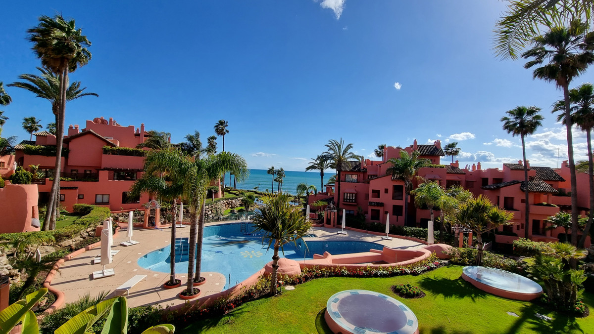 Experience coastal living at its finest with this beautiful and spacious 2-bedroom, 2-bathroom first floor apartment boasting breathtaking sea views in one of Estepona’s most exclusive beachfront resorts. The property is thoughtfully laid out and features: