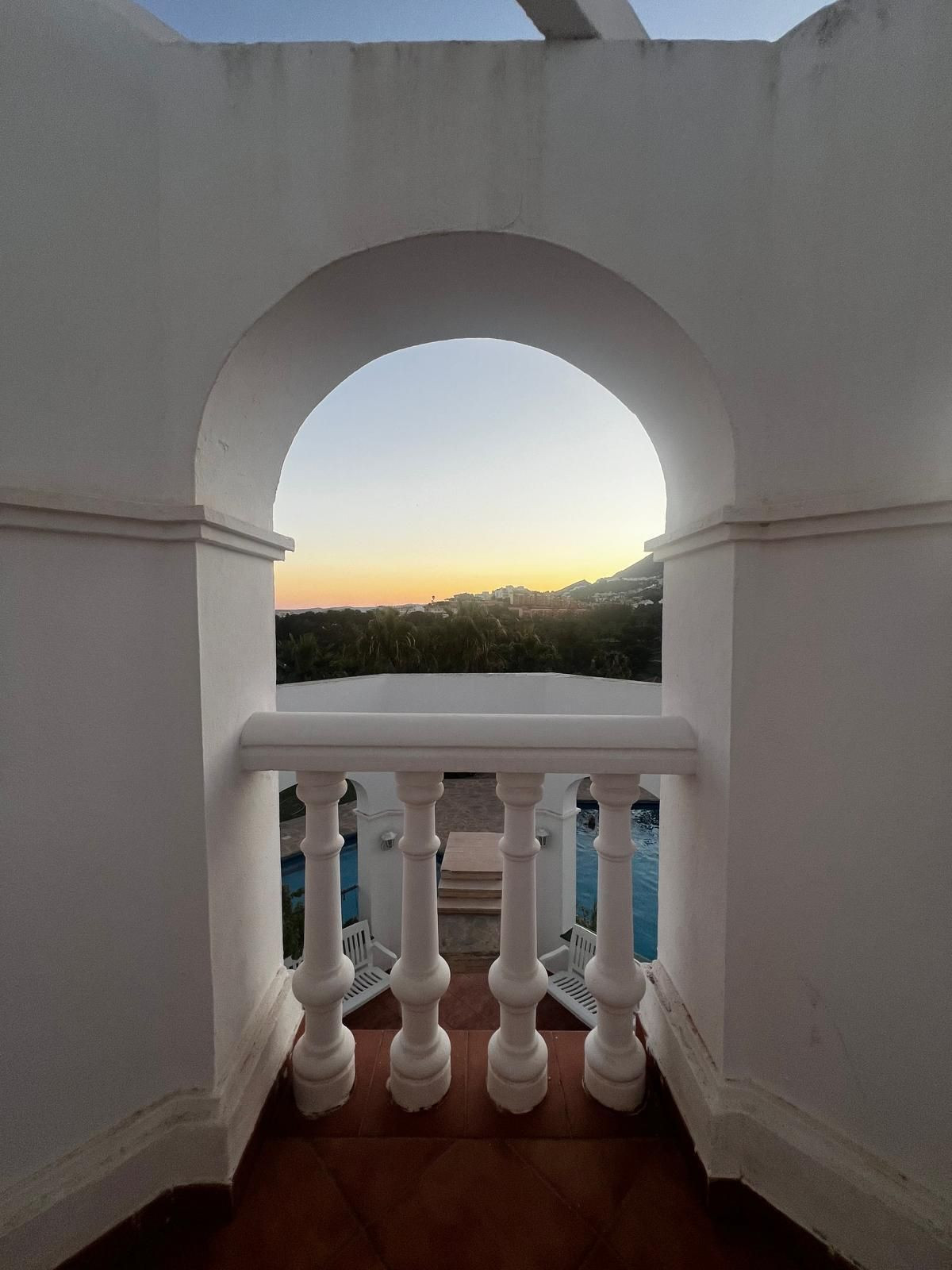On the main floor there is a large covered porch with columns and balustrades, perfect as a chill-out area or summer dining space. On the upper floor, a spacious wrap-around terrace with pergolas offers various corners to relax and enjoy the Costa del Sol climate.