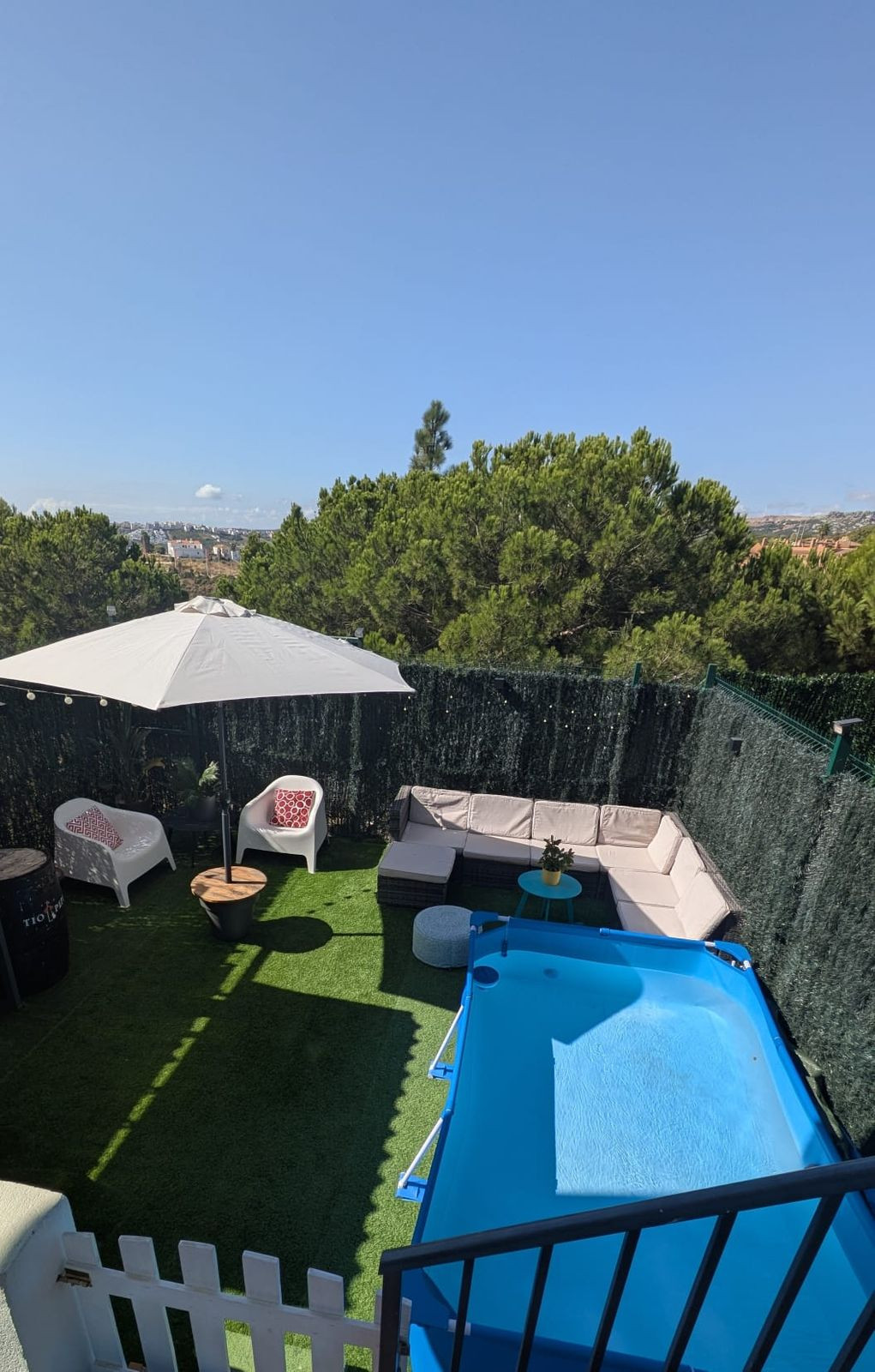 Outdoor Havens: Expansive back patio over 30 m², refurbished with low-maintenance concrete flooring and artificial grass, plus a pergola integrated with a gas barbecue for effortless gatherings. Generous front terrace with open, distant sea views, fitted awnings for shade and protection, and a sense of airy spaciousness.