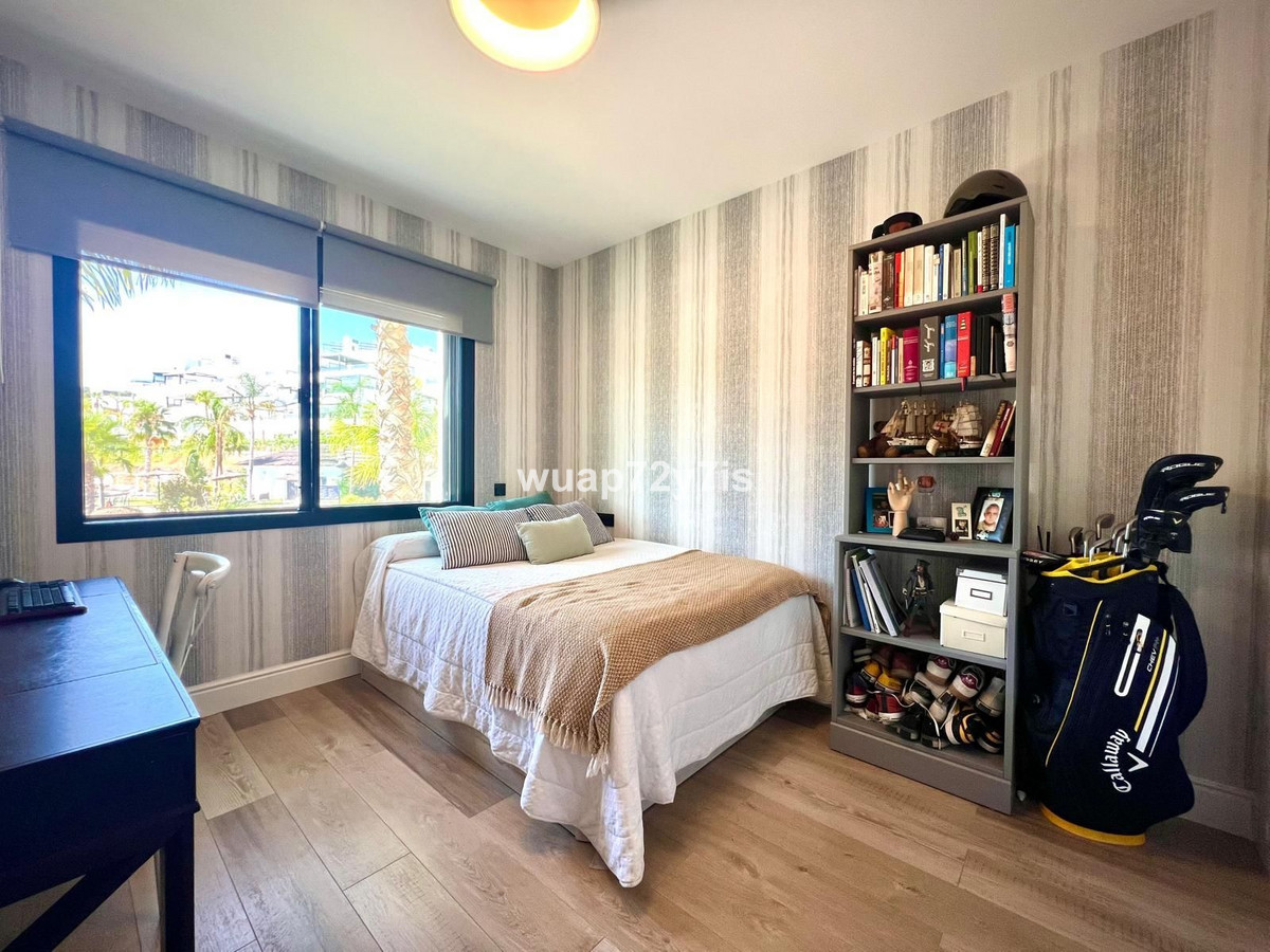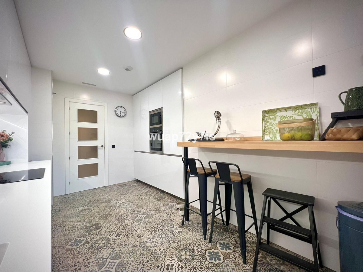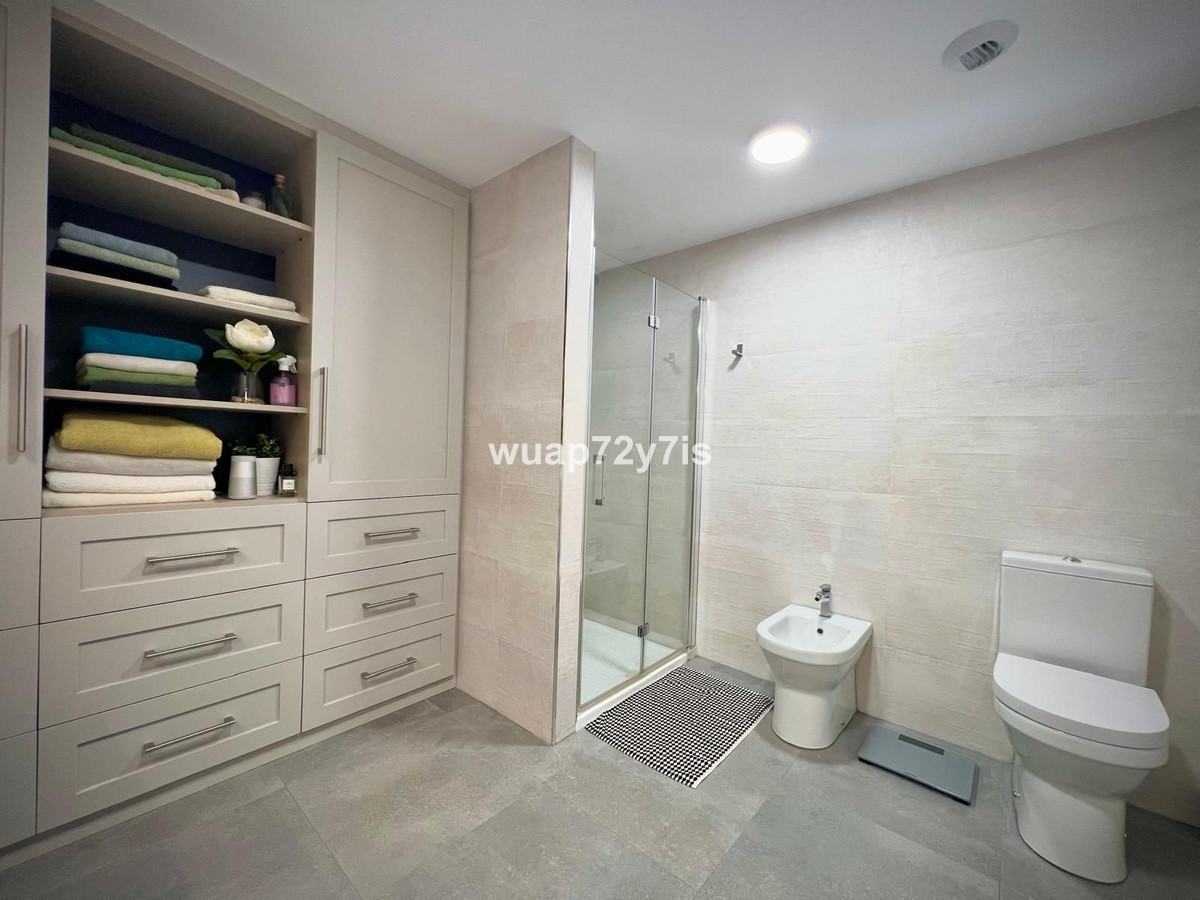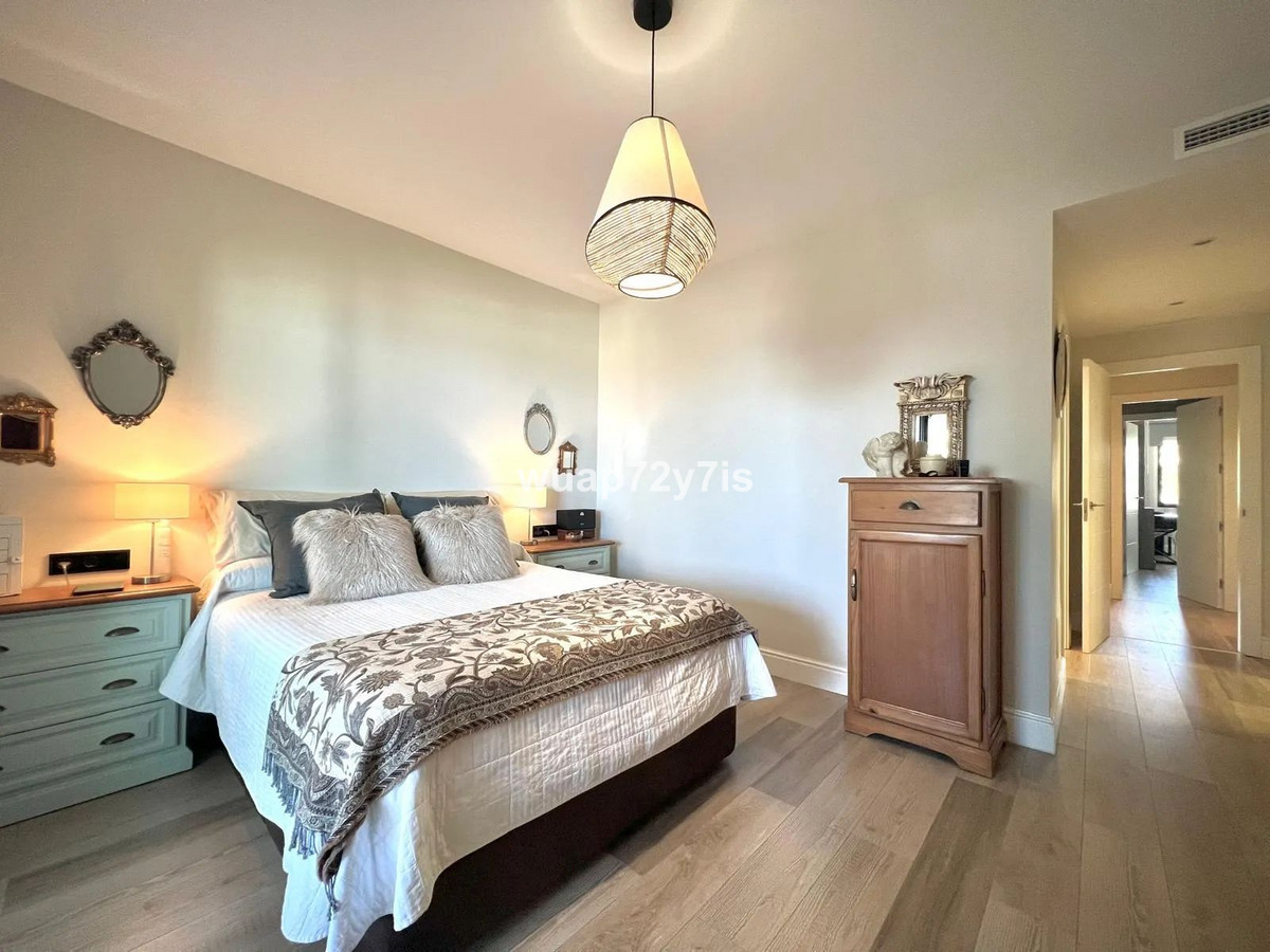 This apartment is located in incredible Mirador de Estepona Hill urbanisation, just 5 minutes from the center of Estepona, 10 minutes from the incredible beach and 23 minutes from the sunny Sant Pedro. This beautifully appointed apartment offers a spacious layout with three spacious bedrooms and two exquisite bathrooms, including a luxurious en-suite in the master bedroom. A thoughtful guest cloakroom with double vanities adds an extra layer of convenience and style. The spacious living area, originally 40 m², was partially reconfigured to create a custom dressing room, seamlessly integrated into the master bedroom for maximum comfort and privacy.