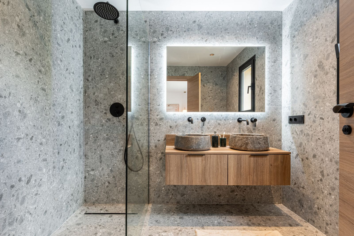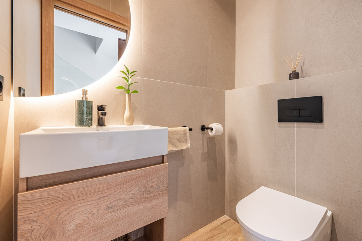 The home features 4 bedrooms, 3 bathrooms, and an additional guest toilet. The open-plan living area flows seamlessly onto a spacious west-facing terrace and garden, ideal for entertaining or relaxing outdoors while enjoying the afternoon sun. An outdoor kitchen enhances the alfresco lifestyle, perfect for enjoying Marbella’s year-round sunshine.