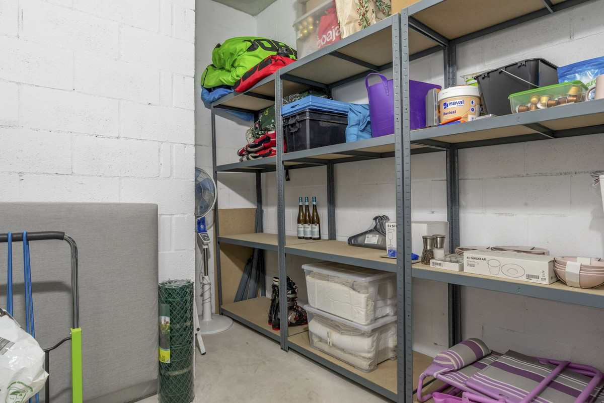 The apartment comes with a spacious storage room and a parking space in the garage. The storage room and private parking space are located next to each other.